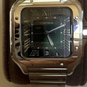 Montre cartier santos à cadran vert, grande taille, wssa0062