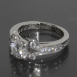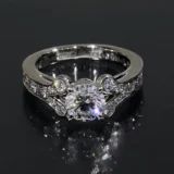 ○ Une bague en platine avec un diamant central de 0,73 ct de couleur Cartier VVS2 et G accentué par des diamants latéraux. Prix spécial en raison de certains défauts.