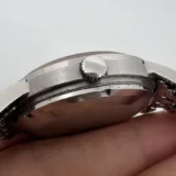Le boîtier est en acier inoxydable et en très bon état. Il mesure 37 mm sans la couronne. Il présente de minuscules rayures dues à une utilisation normale.