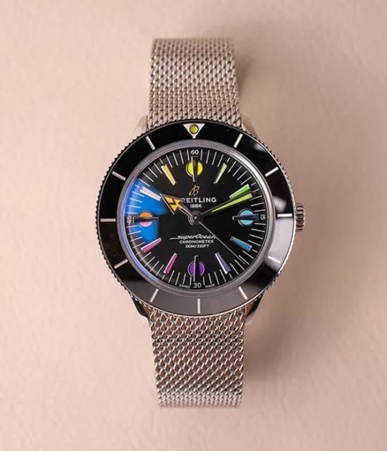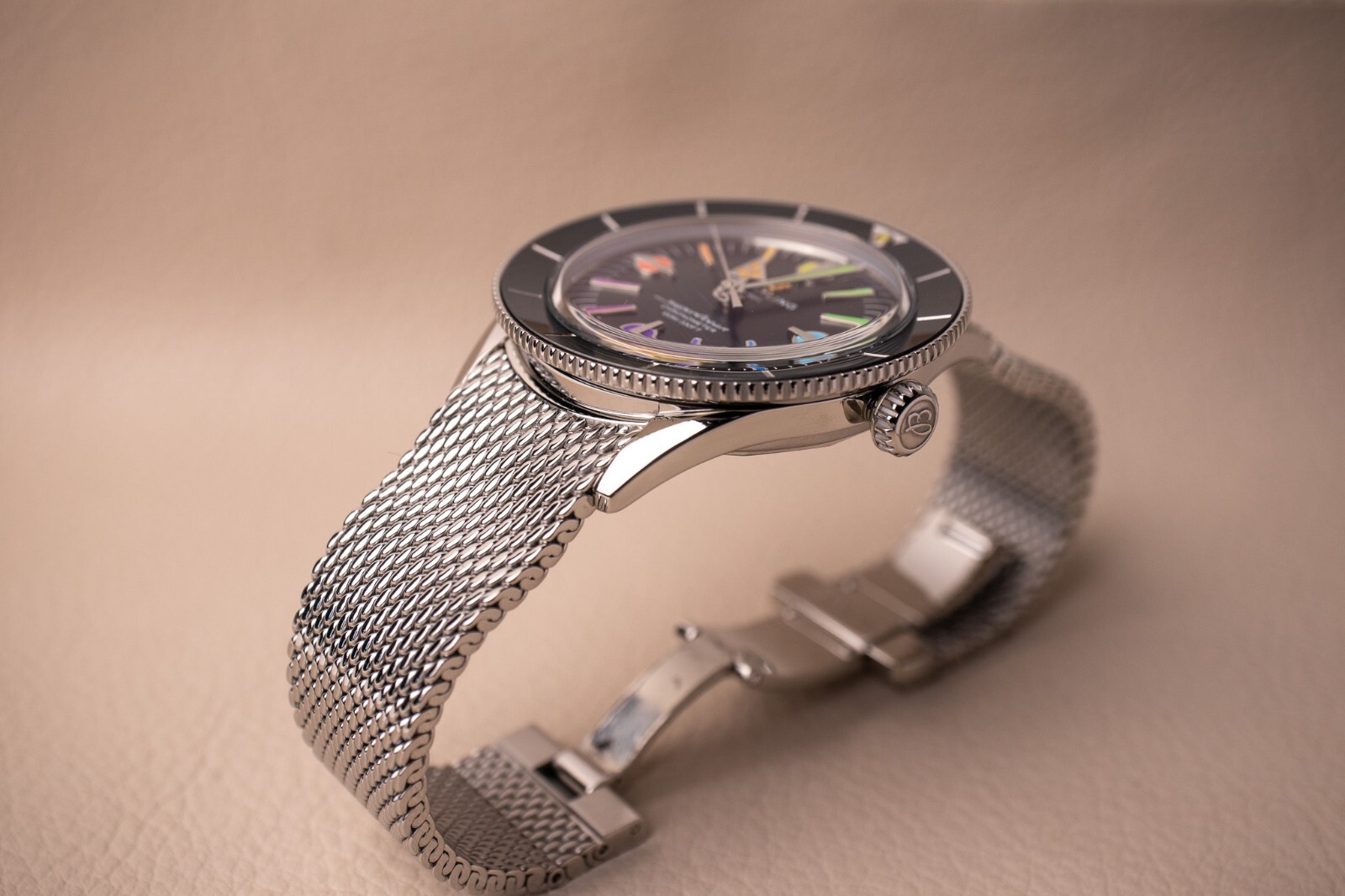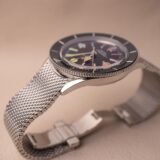 Taille du boîtier : 42 mm x 9,9 mm d’épaisseur x 46 mm d’une corne à l’autre