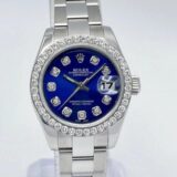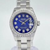 Rolex Datejust Ladies 26mm 179160 Cadran Diamant Bleu et Lunette Diamant Boîte Papiers